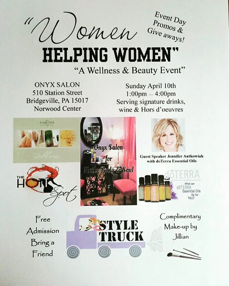 Women helping Women is an event hosted by Onyx Salon and one you won't want to miss! This collaboration of women owned businesses in Pittsburgh is going to be a day filled with great health, wellness and beauty tips from some of the BEST women in business! Please mark your calendar for Sunday April 10th at 1pm est! Please bring a friend or two and plan to have a fabulous day pleasing to your senses!